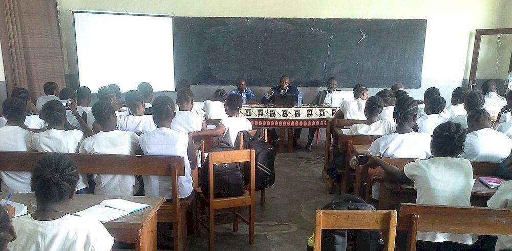 Visite Guidée à INTS-Kinshasa VISITE GUIDEE DES ELEVES DU LYCEE MOVENDA AVEC LEURS ENSEIGNANTS A INTS-KINSHASA LE VENDREDI 11 OCTOBRE 2019 Elles étaient au moins 100 élèves du Lycée Movenda de la commune de Ngiri-Ngiri avec leurs enseignants en visite guidée à l’INTS le vendredi 11 octobre 2019. L’objectif de cette visite a été premièrement dans le cadre de nouer un partenariat entre l’INTS et le Lycée Movenda afin d’assurer aux élèves de ladite école une orientation, surtout ceux qui font la section sociale à pouvoir continuer dans la filière d’Assistance Sociale à INTS-Kinshasa.